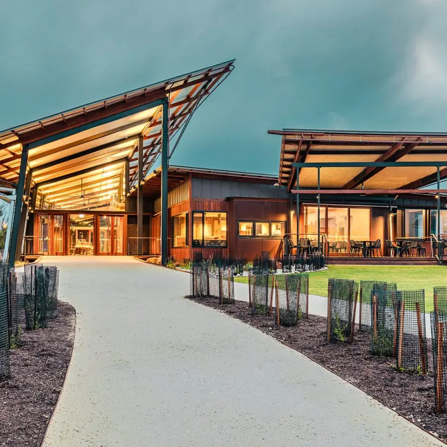 When the 2019–20 bushfires devastated Kangaroo Island, the original Rocky River Visitor Centre at Flinders Chase was among the losses. Its absence left a gap in the island’s visitor experience and community identity. In July 2024, that gap was restored with the opening of the new Flinders Chase Visitor Centre — a world-class tourism and research hub, delivered by Harrold & Kite, designed by Troppo Architects, and supplied by Bone Timber.